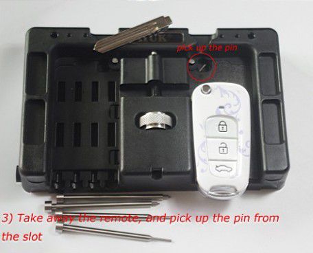 Folding Remotes Quick Removal/Installation tool is used for locksmith to cut key. With this you can easily hold most remote jobs without damage while you safely remove and insert pins to change blades.