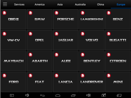 Europe: Volvo, Skoda, Land rover, Jaguar, Ford, Sprinter, Seat, Renault, Peugeot, Opel, Vauxhall, Fiat, Citroen, BMW, BENZ, AUDI, VW, Porsche, Lancia, MayBach, Rolls-Royce, Mini, Smart, Transporter, Lamborghini, Gugatti, Abarth, VW_CV